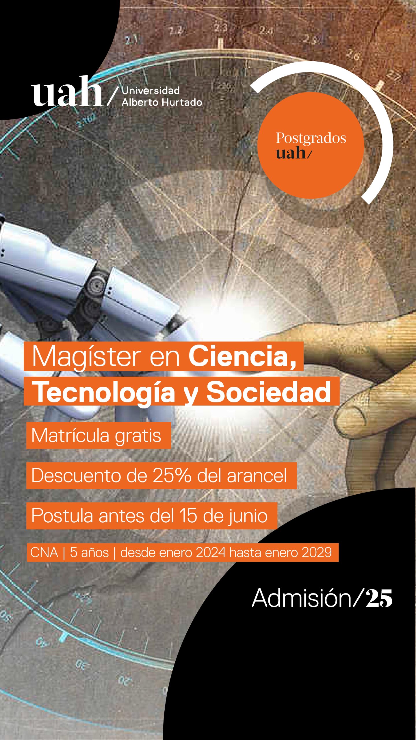 Escribo para compartirles información del Programa de Magister en Ciencia, Tecnología y Sociedad que imparte la Universidad Alberto Hurtado desde 2018 y que, a partir de este año, tengo el orgullo de dirigir siguiendo lo ya elaborado por Sebastián, Leandro y un extenso colectivo de colaboradores. Como nuestra red, se trata de un programa interdisciplinario donde participan varios colegas de nuestra variopinta intersección de saberes y prácticas. El programa se lleva a cabo bajo una modalidad de aprendizaje sincrónico, con clases que en su mayoría son online y que se complementan con algunas sesiones presenciales cada mes. Para interesad@s inscritos antes del 15 de junio existe el beneficio de matrícula gratis y un 25% de descuento en su arancel; las clases comienzan en agosto. Pueden encontrar más información sobre el programa en el siguiente link: https://postgrados.uahurtado.cl/programa/magister-en-ciencia-tecnologia-y-sociedad/ . Cualquier duda, no dejen de contactarme a fsalinas@uahurtado.cl .